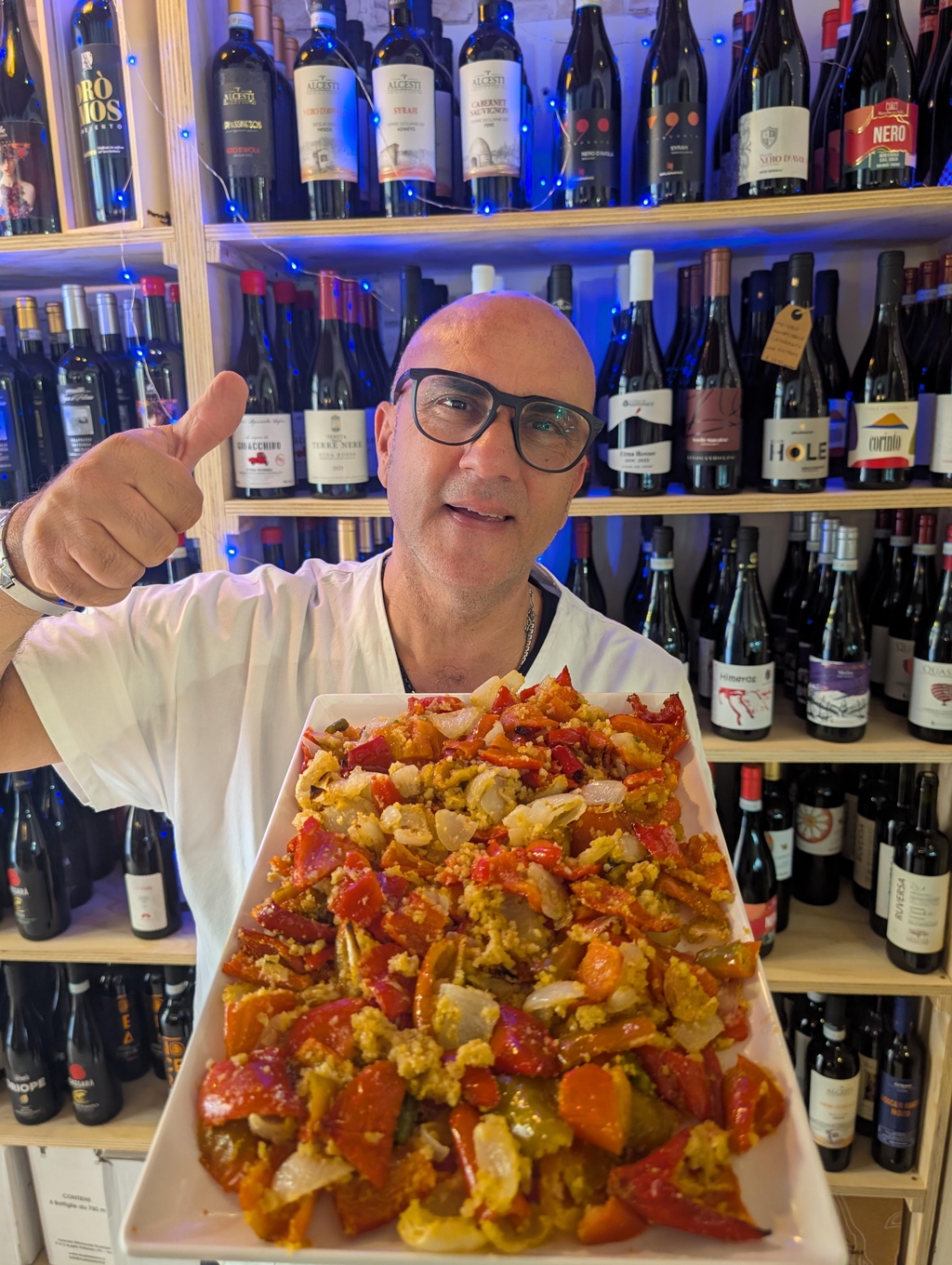 Piccolo locale a conduzione familiare, diverso dal ristorante. Apprezzato per la sua atmosfera accogliente e professionale, offre un'ottima selezione di vini, con un focus sui prodotti siciliani, accompagnati da piatti speciali come parmigiana, caponata, insalate di arance siciliane, taglieri di salumi e formaggi locali. Pane cunzato. Locale ideale sia per un aperitivo che per una serata dedicata alla scoperta dei vini del territorio. Il cibo che serviamo a Taverna Giudecca รจ salutare e delizioso e usiamo ingredienti freschi.